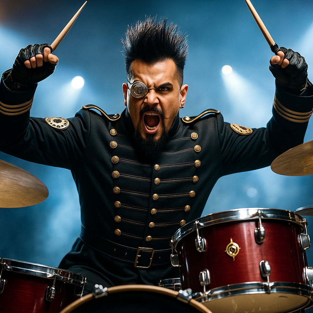 Sahnedeki rolü, gruba ritim ve temel güç kazandırmaktır. Oriens, adeta Demonium Nihil’in kalbi gibidir; her bir davul vuruşu, sahnede çınlayan bir savaş davuluna benzer. Onun davulları, müziğe güçlü bir temel ve ritmik bir omurga sağlar. Vuruşları mekanik bir kesinlikle gelir, adeta bir makinenin mükemmel işleyen dişlileri gibi. Sahnedeki enerjisi neredeyse sınırsızdır, her vuruşla sahneyi sarsar ve izleyiciye müziğin fiziksel bir güç olduğunu hissettirir. Oriens, sadece ritmik olarak değil, aynı zamanda görsel olarak da sahneyi domine eder. Kıyafeti ve mekanik unsurları, sahnenin distopik ve post-apokaliptik atmosferine katkı sağlar. Onun performansı, izleyicilere bir son savaşın başladığını hissettirir; sert, güçlü ve durdurulamaz bir enerji yayılarak sahnede yankılanır.